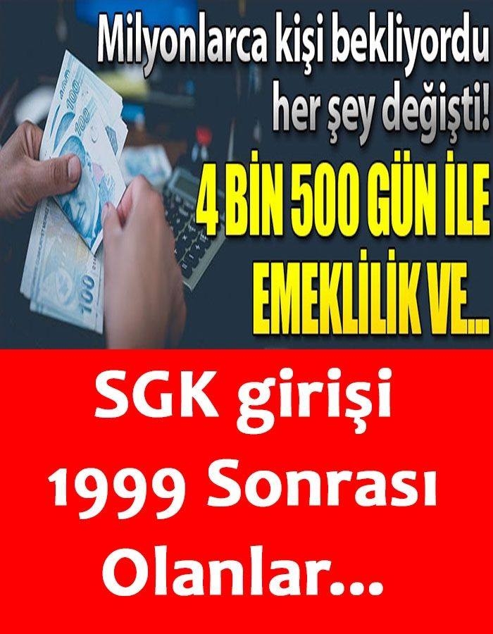 Milyonlarca kişi merak ediyordu ve belli oldu. 4500 gün ile emekli olabilir aynı zamanda tazminatınızı da alabilirsiniz. Peki nasıl?HABERİN DEVAMINI OKUMAK İÇİN FOTOĞRAFIN ÜZERİNE TIKLAYINIZ.