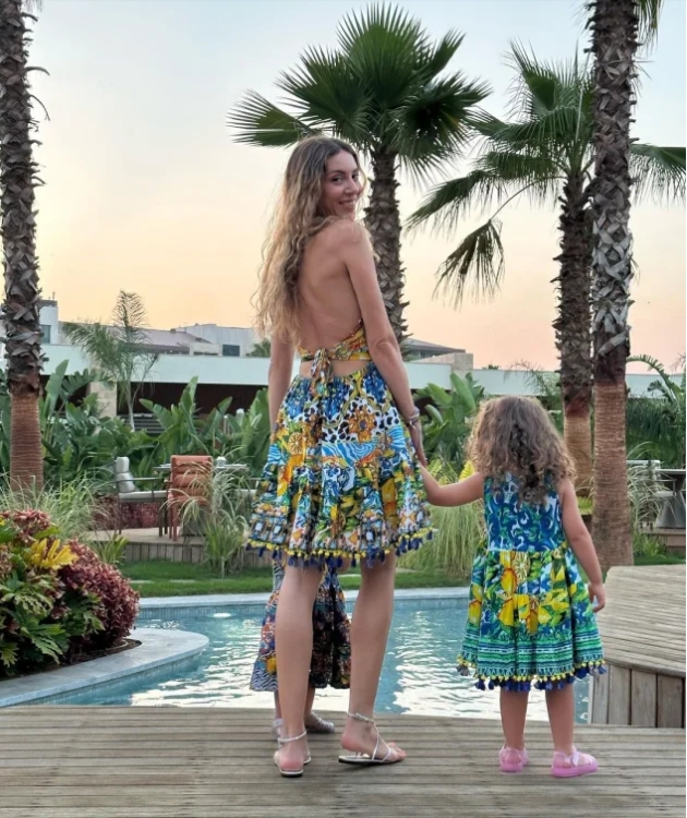 "Yaz, süprizli açıklaması ile yayınladığı pozlarda k-ızları ile uyumlu elbisesi bizi yumuş yumuş yaptı!Gerçekten hayali saç beyazlatır cinsten. :)