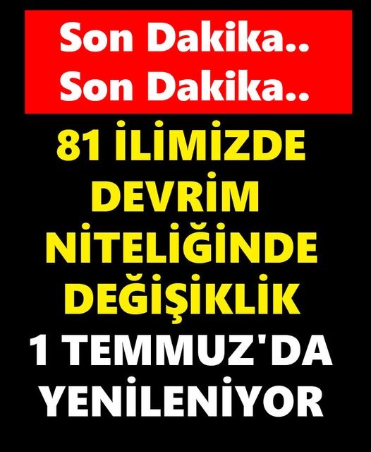 81 İlimizde devrim niteliğinde değişiklik 1 Temmuz'da yenileniyor.. Ayrıntılar Haberin Detayındadır… Haberimizin devamını okumak için Lütfen sonraki sayfaya geçiniz..