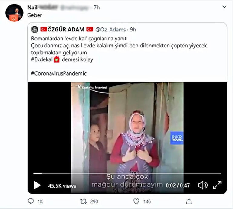 Bu paylaşımı da İstanbul Aile ve Sosyal Politikalar İl Müdür yardımcısı Nail N. alıntılayarak “Geber” ifadesiyle yeniden paylaştı. Nail N. yaklaşık 7 saat sonra, gelen tepkiler üzerine tweet'ini sildi.