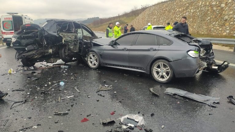 İstanbul-Bursa-İzmir Otoyolu Selçukgazi mevkinde 4 otomobilin karıştığı, 4 kişinin yaşamını yitirdiği, 7 kişinin yaralandığı kaza, otoyoldaki güvenlik kamerasına yansıdı.