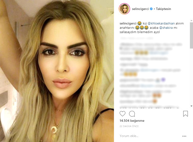 İşte Ciğerci'nin o paylaşımı Cinsiyet değiştirme operasyonuyla gündeme gelen sosyal medya fenomeni Selin Ciğerci, ünlü şarkıcı Simge Sağın'a "Shakira" üzeriden gönderme yaptı. "SHAKİRA'YA MI SALLASAYDIM BİLEMEDİM" Instagram hesabı üzerinden paylaşım yapan Selin Ciğerci "Kız @khloekardashian alırım anahtarını. Acaba @shakira mı sallasaydım bilemedim ayol" yorumunu yaptı. Cigerci'nin yorumu akıllara geçtiğimiz günlerde "Shakira" paylaşımıyla eleştirilen Simge Sağın'ı getirdi. SİMGE SAĞIN NE DEMİŞTİ? Simge Sağın Shakira videosu altına "Ne o öyle popo show. Başka bir şey yok zaten showda... Nieyse buraya hep böyle geliyor dünya starları..." yorumunu yapmıştı. Sağın'ın bu yorumu sosyal medya kullanıcıları tarafından çok eleştirilmişti.