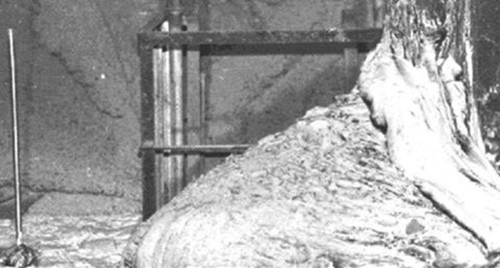 Gerçek hayatta bu görüntüye baksaydınız mutlaka ölürdünüz. Zira bu fotoğraf, insanlığın bakanı taşa dönüştüren yarı Tanrı Medusa’yı yaratmaya en çok yaklaştığı anı gösteriyor. Görüntü Çernobil’deki nükleer santralin bodrum katında çekilmiş. Santraldeki bir reaktör çekirdeği erimiş ve bu görüntü ortaya çıkmış. “Fil Ayağı” da denilen bu materyal yüzlerce ton ağırlığında ve birkaç metre genişliğe sahip. Fotoğraf, bu materyalin bulunduğu koridorun sonundan uzatılan bir ayna yardımıyla çekildi. Zira fotoğrafı çekmek için gönderilen uzaktan kumandalı fotoğraf makinası, radyasyon sebebiyle anında yok oldu.