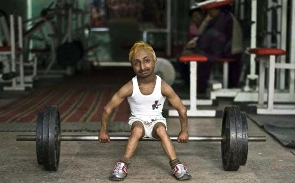 Ufak Romeo, Hindistan'daki memleketi Phagwara'da, 9 kiloluk vücut ağırlığına rağmen 1.5 kg'lık dambılları kaldırmasıyla ünlü.