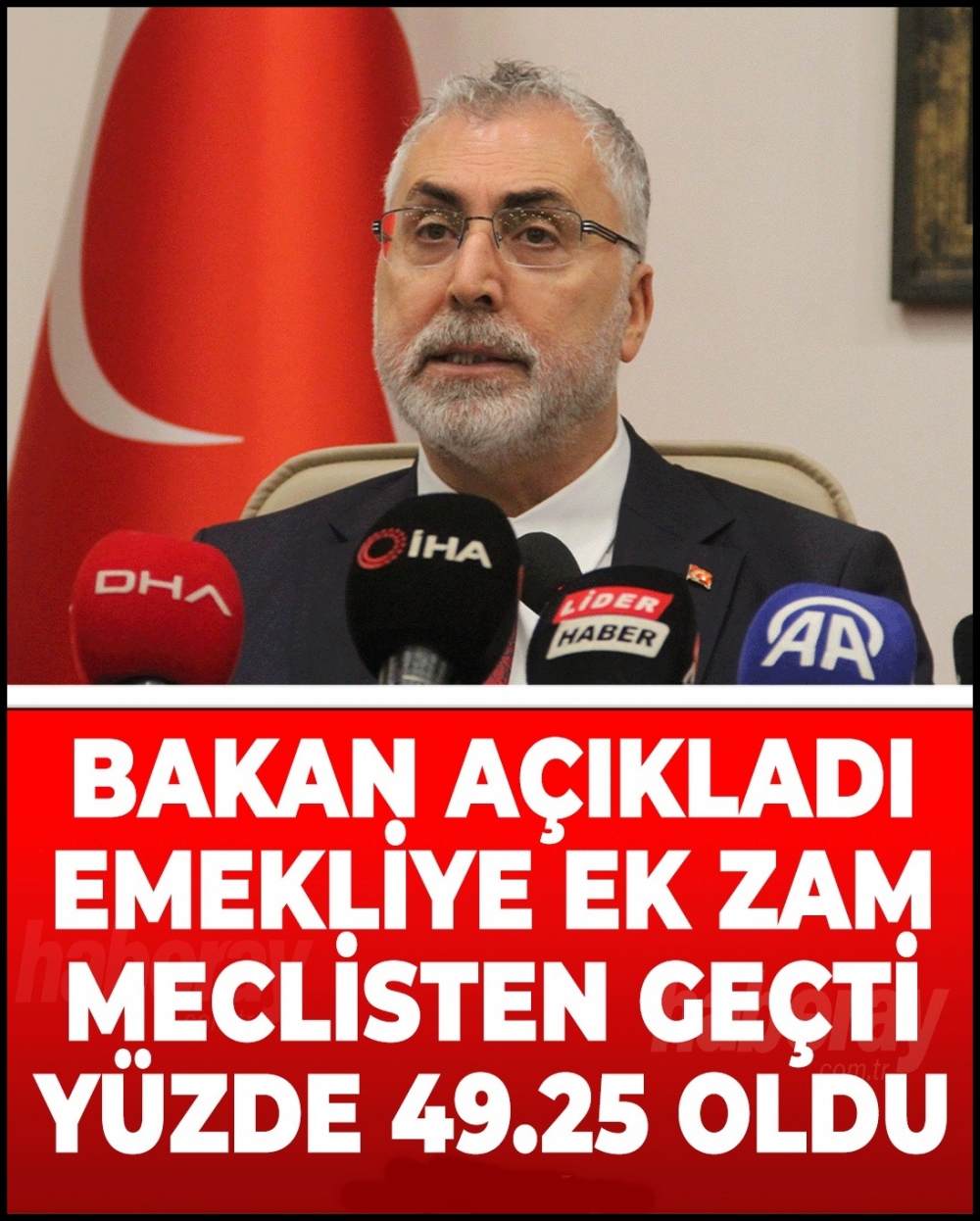 Çalışma ve Sosyal Güvenlik Bakanı Vedat Işıkhan, emekli maaşlarında önemli bir artışın müjdesini verdi. Bağ-Kur, SSK ve memur emeklileri için maaşlar yüzde 49,25 oranında zamlanarak, en düşük emekli maaşı 10 bin liraya çıkarıldı. 3 Ocak itibarıyla emeklilere yapılacak zam oranı belli olmuştu. SSK ve Bağ-Kur emeklilerine enflasyon oranına göre yüzde 37,57 oranında zam kesinleşmişti. Cumhurbaşkanı Recep Tayyip Erdoğan, son kabine toplantısı sonrasında yaptığı açıklamada bu oranın yüzde 5 artırıldığını ifade ederek SSK ve Bağ-Kur emeklilerinin zam oranı yüzde 42,6 olmuştu. En düşük emekli maaşı da 7 bin 500 TL'den 10 bin TL'ye çıkarılmıştı. Haberimizin devamını okumak için Lütfen sonraki sayfaya geçiniz..
