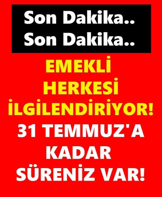 Emekli Herkesi İlgilendiriyor 31 Temmuz'A Kadar Süreniz Var.. Ayrıntılar Haberin Detayındadır… HABERİN DEVAMINI OKUMAK İÇİN Lütfen sonraki sayfaya geçiniz..