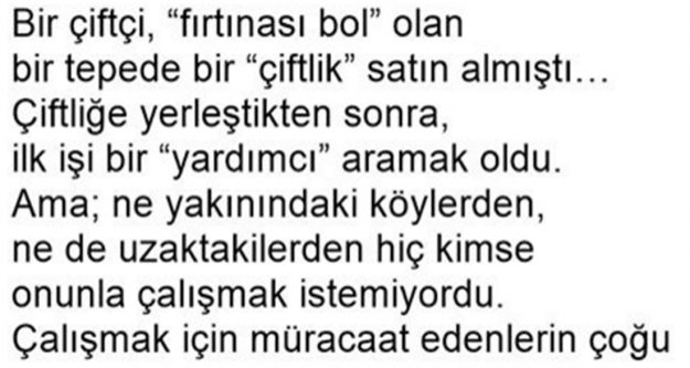 Çiftlik sahibi; adamın haline bakıp “Çiftlik işlerinden anlar mısın?” diye sormadan edemedi.