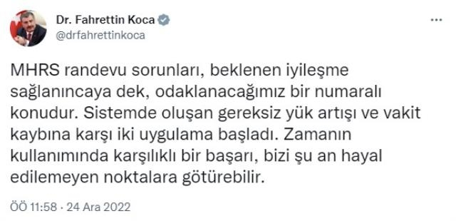 Buna göre MHRS üzerinden randevu alıp gitmeyen ve iptal de etmeyen kişiler, 15 gün süreyle tekrar aynı branştan randevu alamayacak. Ayrıca aldığı randevunun öncesinde aynı branşta muayene olan ve bu nedenle randevusu boş geçtiği saptanan kişiler için de aynı durum geçerli olacak. Bu iki uygulamayla, hastaların MHRS randevuları konusunda zorluk yaşamasının önüne geçilmesi amaçlanıyor.