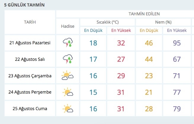 Edirne hava durumu 5 günlük meteoroloji tahmini