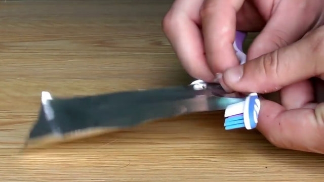 Bunun için kullanılmayan diş fırçasını kırmadan bükmek gerekiyor.