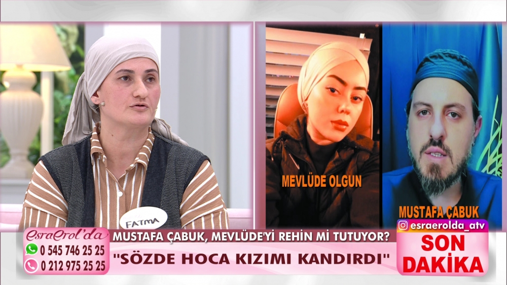 Esra Erol ise genç kıza seslenerek bu kişinin daha önce tarihi eser kaçakçılığından tutuklandığını ve ardından Ruh ve Sinir Hastalıkları Hastanesi’ne sevk edildiğini söyledi. Esra Erol’da canlı yayınına kısa sürede konuya ilişkin birçok ihbar geldi. Bu topluluğun ‘Biz 1500 kişi olduğumuzda savaş çıkartacağız’ iddiaları da sosyal medyanın diline düştü. Esra Erol, gerekli kurumların termal otelle ilgili inceleme başlatacaklarını belirtti. Ayrıca Mustafa Çabuk’la ilgili ortaya atılan iddialar, Adnan Oktar’ı anımsattı. Haberin detaylarını okumak için Lütfen sonraki sayfaya geçiniz..