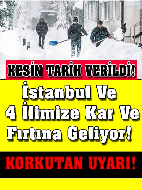 İSTANBUL VE 4 İLİMİZE KAR VE FIRTINA GELİYOR..