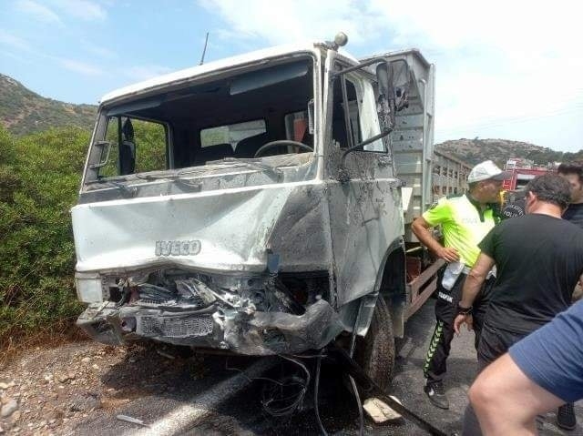 KAMYON KARŞI ŞERİDE GEÇEREK MİNÜBÜSE ÇARPTI