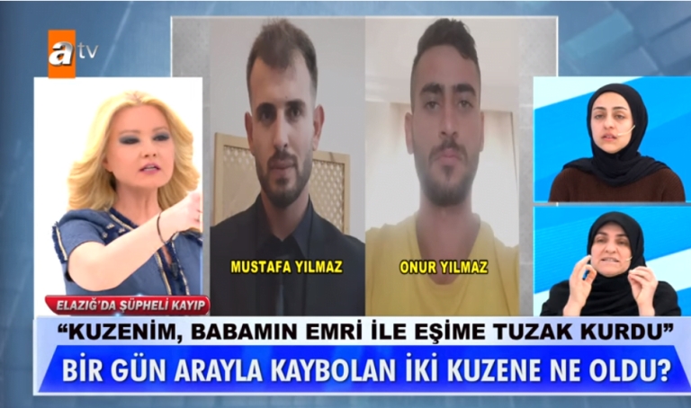 Müge Anlı’da aranan 25 yaşındaki kuzenler Mustafa ve Onur Yılmaz’ın kaybolmalarına ilişkin bu sabah eş zamanlı operasyonlar gerçekleştirildi. Mustafa Yılmaz’ın karısının aile üyeleri Elazığ’da gözaltına alındı. Operasyonun İstanbul ayağında ise kayıp kuzenlerden Onur Yılmaz’ın annesi Hatice Yılmaz, Müge Anlı’nın canlı yayınında ekipler tarafından gözaltına alındı. Anne Yılmaz o sırada ağlayarak, “Oğlumun da yeğenimin de yaşadığını düşünmüyorum. İkisini de ortadan kaldırdılar” dedi.