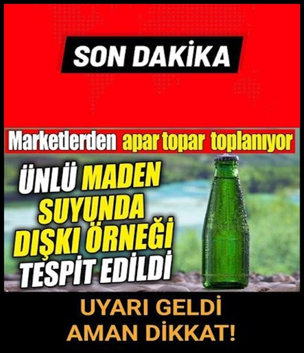 Ünlü maden suyunda dışkı Ünlü maden suyunda dışkı örneği tespit edildi! Marketlerden apar topar toplanıyor! Dünyaca ünlü gıda devi maden suyu için işlettiği kuyulardan birinde insan dışkısında bulunan bir bakteri türü tespit edildi. Haberimizin devamını okumak için Lütfen sonraki sayfaya geçiniz..