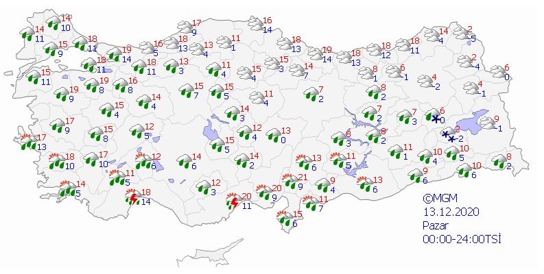 13 Aralık Pazar günü beklenen hava durumu şu şekilde...