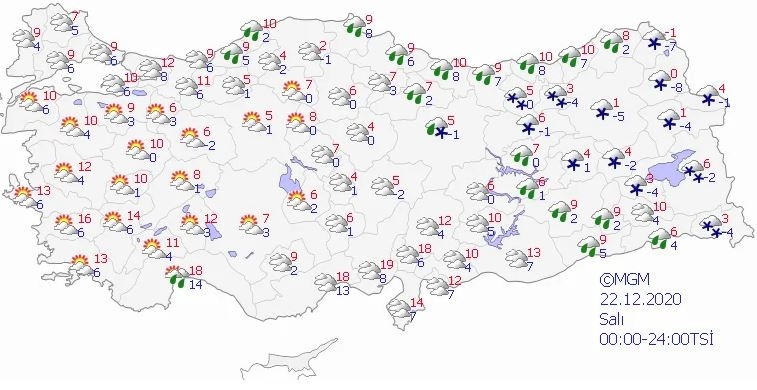 22 Aralık Salı yurt genelinde hava durumu tahmini