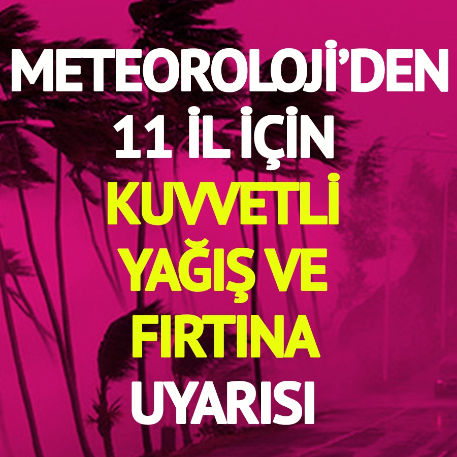 METEOROLOJİ’DEN 11 İL İÇİN KUVVETLİ YAĞIŞ VE FIRTINA UYARISI