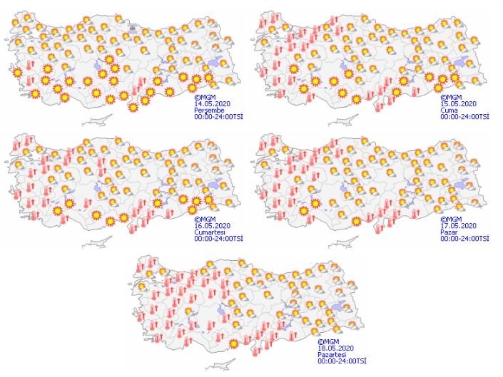 Yaz bu sene erken geliyor ve tahminlere göre bu hafta sonu yaz havasını ciddi şekilde hissedeceğiz. Hava durumu tahmin haritasına göre bugünden itibaren yükselişe geçecek olan sıcaklıklar hafta sonu 40 derecenin üzerine çıkacak. İstanbul’da 33 dereceye ulaşacak olan sıcaklıklar, Ankara’da 35, İzmir’de ise 37 dereceye kadar çıkacak.