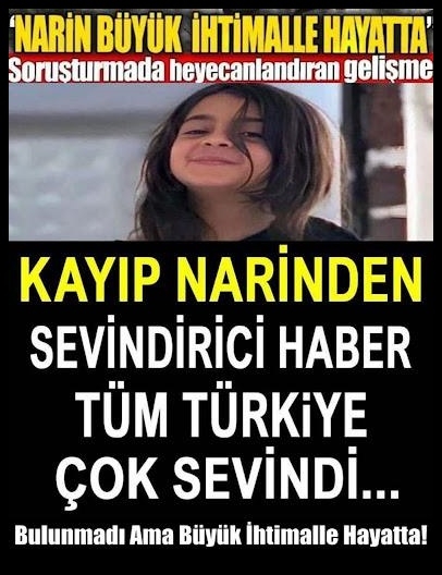 İddialar geldi “Narin büyük ihtimalle hayatta.” soruşturmada heyecanlandıran gelişme yaşandı.. Haberimizin devamını okumak için Lütfen sonraki sayfaya geçiniz..