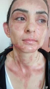 YÜZÜ TAMAMEN YANDI Kızgın buhar ve suyun yüzünü kaplamasıyla büyük acı yaşayan Nazlı Biçer Ertuğ, çığlık atarak mutfaktan dışarıya koşup, kayınvalidesi Şadan Ertuğ'dan yardım istedi. Bir yandan yüzünü yıkayıp serinletmeye çalışan Ertuğ, bir yandan da 112'yi aradı. Hastaneye götürülen Nazlı Biçer Ertuğ'un yüzünün büyük bir bölümü ile vücudunun çeşitli yerlerinde, birinci ve ikinci derece yanıklar oluştuğu anlaşıldı. Yanık kremiyle tedavisine başlanan talihsiz kadının, yaralarının kapanmasından sonra plastik cerrahlarca tedavisinin sürdürüleceği belirtildi. Nazlı Biçer Ertuğ'un yüzü, kaza öncesi haline göre neredeyse tanınmayacak hale geldi.