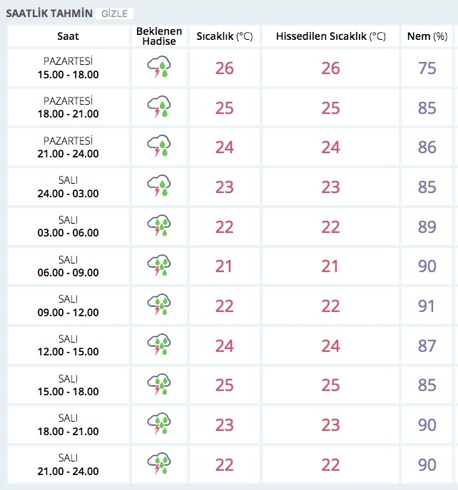 Kocaeli saatlik hava durumu meteoroloji açıkladı