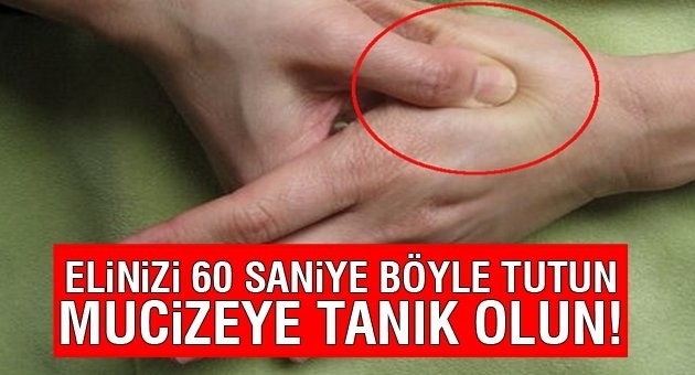 Ancak canınızı hafif acıtacak kadar sıkın. Bir kaç denemeden sonra o acı veren noktayı bulduğunuzda 60 saniye öyle tutun. Aynı işlemi sonra diğer eliniz için de yapın. Hafiflemeyi hissedeceksiniz.