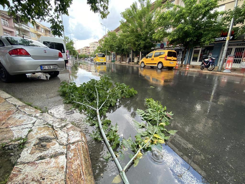 Düzce'de kuvvetli sağanak yağış etkili oldu. Yağış ve beraberindeki fırtına nedeni ile bazı ağaçların dalları koparken, bazı bölgelerde de su birikintileri oluştu.