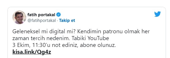 FOX TV’den kendi tercihiyle ayrılmaya karar verdiğini belirten Portakal Twitter’daki mesajında, “Sadece, ‘Ne yapmak istiyorum?’ sorusunun cevabını aradım. İçsel devrime ihtiyacım vardı. Kariyer, tanınmışlık, kazanç vazgeçilebilecek şeylerdi” cümlelerini kullanmıştı. DEVAMI İÇİN DİĞER SAYFAYA GEÇİNİZ..