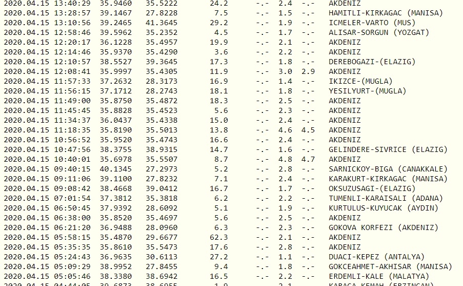 Türkiye ve çevresinde meydana gelen son depremler şöyle:
