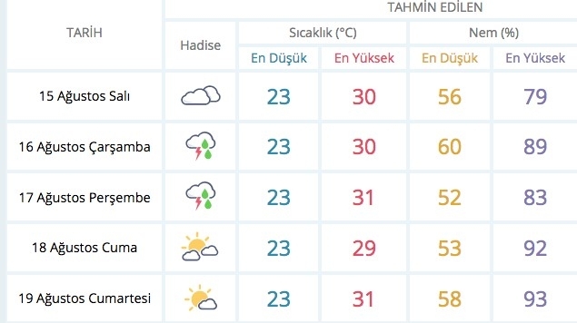 İSTANBUL 5 GÜNLÜK HAVA DURUMU