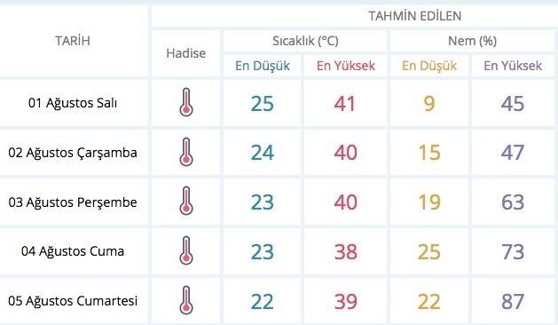 GAZİANTEP 5 GÜNLÜK HAVA DURUMU