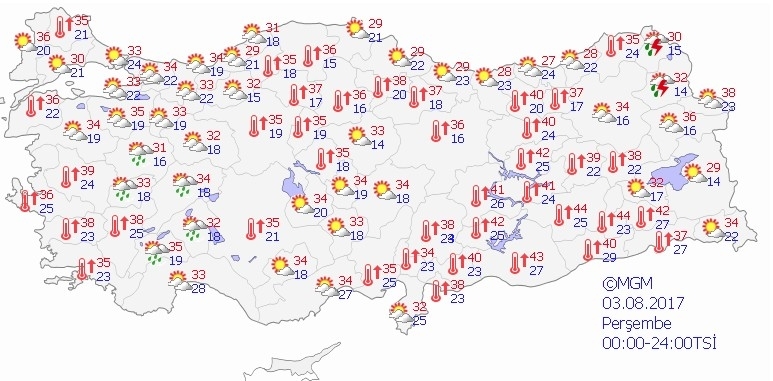 Uzun yıllar Ağustos ayı en yüksek sıcaklık ortalaması 30 derece olan İstanbul ilimizde önümüzdeki hafta sonuna kadar en yüksek hava sıcaklığının mevsim normalleri civarında (29-32 dereceler arasında) olacağı ancak 4 Ağustos Cuma gününden itibaren normallerinin üzerine çıkarak 35 dereceye kadar ulaşabileceği tahmin edilmektedir. İstanbul’da 1 ve 2 Ağustos günleri rüzgarın kuzeydoğu yönünden (poyraz) kuvvetli olarak (40-60 km/saat) eseceği de beklenmektedir.