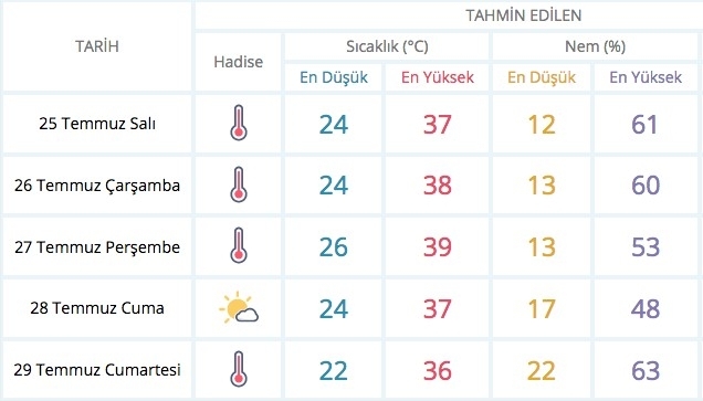 GAZİANTEP 5 GÜNLÜK HAVA DURUMU