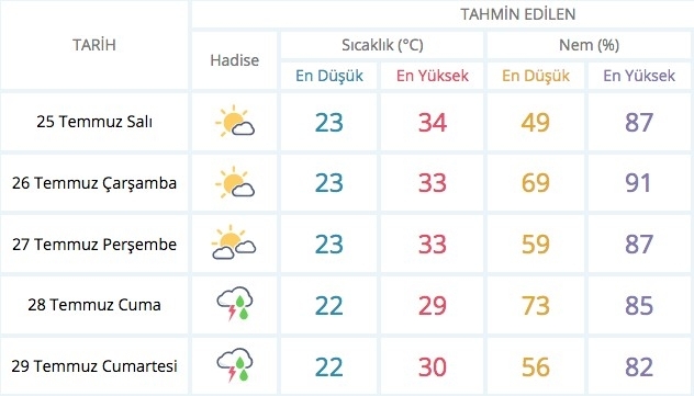 İSTANBUL 5 GÜNLÜK HAVA DURUMU