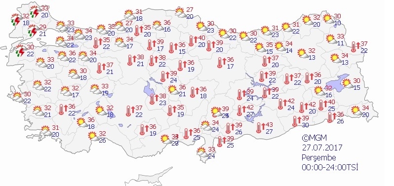 İstanbul'da cumadan itibaren ise sağanakla birlikte sıcaklıkların 5 derece kadar düşeceği öngörülüyor. Bu kapsamda cuma günü kentte sıcaklığın en düşük 22, en yüksek ise 29, cumartesi de en düşük 22, en yüksek 30 derece olacağı tahmin ediliyor.