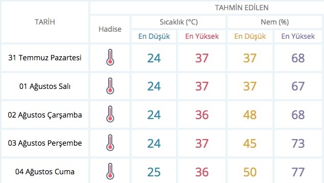İZMİR 5 GÜNLÜK HAVA DURUMU