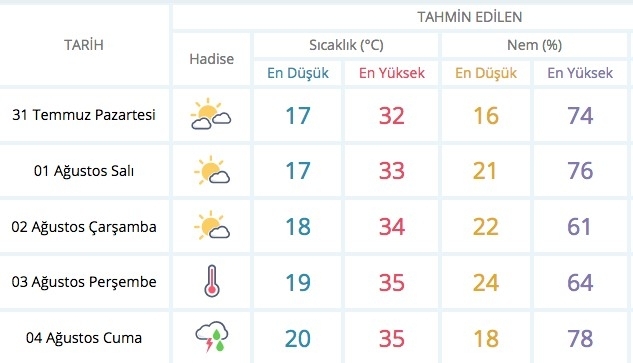 ANKARA 5 GÜNLÜK HAVA DURUMU