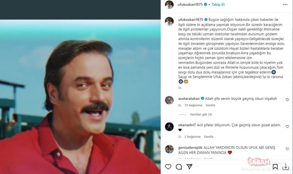 Karaciğeri iflas eden ünlü ismin 12 ay içerisinde karaciğer nakli olması gerektiği yönünde haberler gündeme gelince oyuncudan açıklama gecikmedi. İşte, Ufuk Özkan'ın sağlık durumu hakkındaki o paylaşımı: Haberimizin devamı için Lütfen sonraki sayfaya geçiniz..