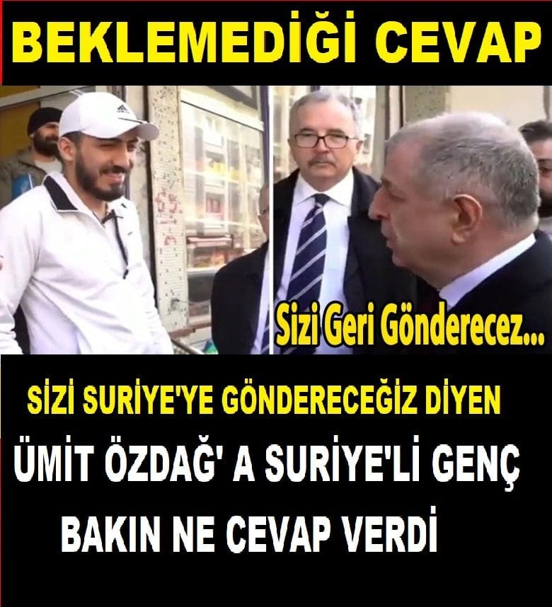 S’eçimlerdeki en büyük vaatlerinden birinin “Suriyelileri ülkesine göndermek” olduğunu belirten Zafer P’artisi Genel Başkanı Ümit Özdağ’ın Esenyurt’a gerçekleştirdiği ziyaret sırasında Suriyeli bir gençle yaşadığı diyalog dikkat çekti.Detayı gorsele tklayarak bir sonraki sayfadan okuyunuz.
