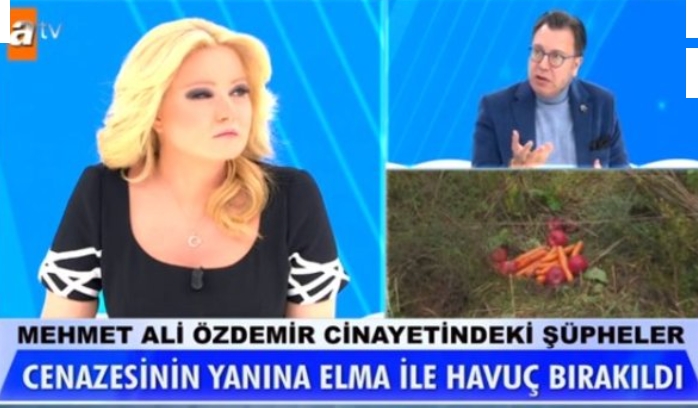 Diğer yandan sır dosyayla ilgili şaşırtıcı bir detay daha gün yüzüne çıktı. Mehmet Ali Özdemir'in cansız bedeninin yanında havuç ve elma bırakıldığı görüldü. Sebzelerin olduğu poşeti Olay Yeri İnceleme ekipleri aldı. O bölgeye domuz, ayı gibi hayvanların geldiğini ve o tarz sebzeleri yediklerini söyleyen bir izleyici: "Belki de cesedi hayvanların yemesini istedikleri için sebzeleri oraya koydular" dedi.Müge Anlı bu detay hakkında: "Ben çok vahşi cinayet gördüm ama bu kadar elmalı havuçlu… İçimi kötü etti. Bunu planlamak bile çok kötü. Bu işin sonunu çok merak ediyorum. Elma ve havucu oraya koyması… Çok cani çok cani... Nasıl böyle bir şey yaparsın" ifadelerini kullandı. Haberimizin devamını okumak için Lütfen sonraki sayfaya geçiniz..
