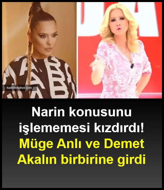 20 Eylül 2024 Cuma 00:20Demet Akalın'ın kaybının 19. gününde cansız bedeni dereye atılan bir çuvalın içinde bulunan Narin'in cinayetini programına taşımayan Müge Anlı'ya tepki gösterdi. Müge Anlı da isim vermeden Akalın'a canlı yayında ateş püskürdü.İşte o sözler... Devamını okumak için diğer sonraki sayfaya geçiniz.