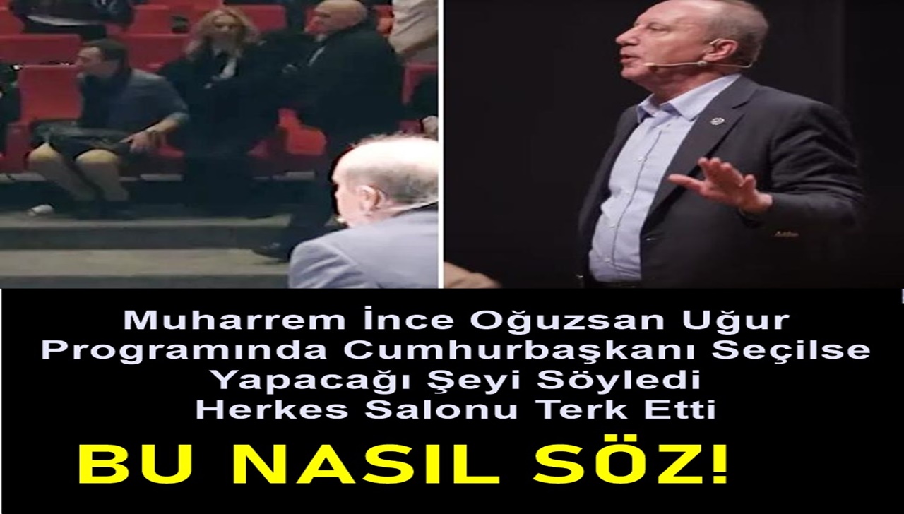 Oğuzhan Uğur'un programına katılan Cumhurbaşkanı adayı Muharrem İnce, kendisine soru soran izleyicileri FETÖ'cü olmakla suçladı. Elindeki bir tabloyu kaldırıp, "Sizi madara etmek için getirdim" diyen İnce'ye salondakiler tepki gösterdi. İnce'den "madara" sözünü geri almasını isteyen seyirciler salonu terk etti. Bir seyirci ise,