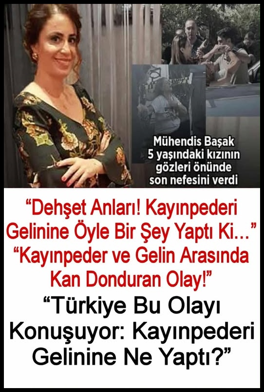 12 Eylül 2025 Cuma 20:26Ankara’da yüksek mühendis Başak Gürkan Arslan (46), boşanma aşamasındaki eşinin babası Kudret Arslan (63) tarafından, 5 yaşındaki kızının gözü önünde bıçaklanarak öldürüldü. Olayla ilgili soruşturma sürüyor. Olayla ilgili soruşturma sürüyor.. Haberin ayrıntılarını ve Detaylarını okumak için Lütfen sonraki sayfaya geçiniz..
