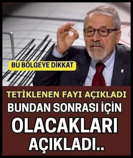 08 Aralık 2025 Pazartesi 22:13Prof Dr. Naci Görür. uzman deprem bilim uzmanı . maraş depremi öncesinde de uyarılarda bulunmuştu ve dediği gibi gerçekleşti. Geçtiğimiz günlerde Konya başta olmak üzere birkaç ilimiz daha sallanmış ve fay hatlarının kırılması konusunda ikazda bulunmuştu.