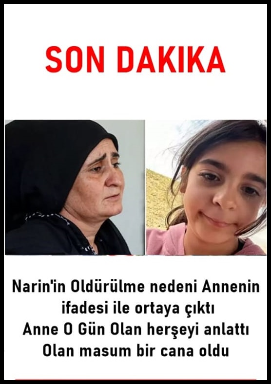 Kocasına başta Narin'in kaybolduğunu söylemediğini belirten anne Güran, köyden birinin Arif Güran'ı arayarak, kızının kaybolduğunu kendisine söylediğini ifade etti. Kocasının bunun üzerine kendisini aradığını söyleyen anne, kocasının Narin nerede diye sorduğunu, kendisinin ise "Bende bilmiyorum" dediğini ve kocasının telefonu kapattığını beyan etti.