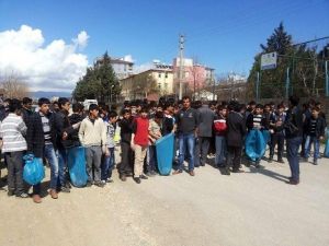 Adıyaman’ın Kahta ilçesinde Mesleki ve Teknik Eğitim Merkezi (METEM) öğrencileri toplumsal bilinç oluşturmak için mahallenin çöplerini topladı.