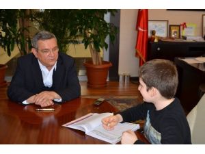 Ödevleri nedeniyle randevu alarak Kuşadası Belediyesi binasına gelen öğrenciler, başkanlık makamında Kuşadası Belediye Başkanı Özer Kayalı ile yüz yüze görüştü. Kuşadası İkiçeşmelik İlköğretim Okulu öğrencileri, öğretmenlerinin Kuşadası Belediye Başkanı’na yönelik verdiği sekiz soruyu tek tek cevaplayan Kayalı, ödevlerini tamamlayan öğrencilere birer kitap armağan etti.