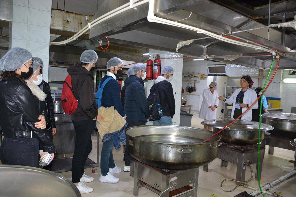 Düzce Üniversitesi Sağlık Kültür ve Spor Daire Başkanlığı tarafından yürütülen projede, yemekhanelerde yürütülen hizmetleri öğrencilerine açarak, her alanda olduğu gibi beslenme hizmetlerinde de şeffaflığa verdiği önemi gösteriyor. Beslenme hizmetleri biriminde görev yapan Gıda Mühendisleri eşliğinde Düzce Üniversitesi öğrencileri, Konuralp Yerleşkesi karavana mutfağında yemekhane depoları, bulaşıkhane ve diğer alanları ziyaret ederek, pişirilen yemeklerin kalite standartları kapsamında nasıl hazırlandığını yerinde görme imkanı elde etti. Etkinlikte öğrencilere sürpriz ikramlarda da bulunuldu.