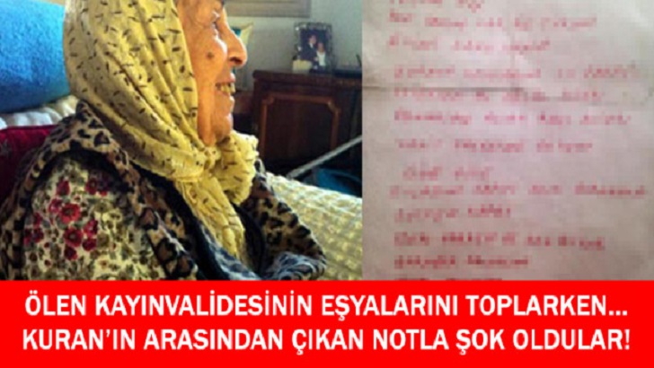 İzmir’de yaşayan Aliye Türkan Tüzemen, solunum yetmezliği sonucu geçen 25 Mart günü tedavi gördüğü hastanede hayatını kaybetti. Erzurumlu işadamı Yılmaz Kuşkay, kayınvalidesi Tüzemen’in oturduğu İzmir’in Hatay semtindeki İnönü Caddesi’nde bulunan Murat Apartmanı’ndaki evinde bulunan Kuran-ı Kerim’in içinde 10 yıl önce hırsıza not yazdığını gördü. Bir bankanın antetli kağıdına kırmızı kalemle ve büyük harflerle yazılan ’Eve hırsızlığa gelene not’ta, Tüzemen şöyle diyor: